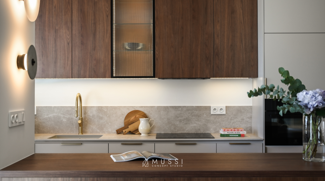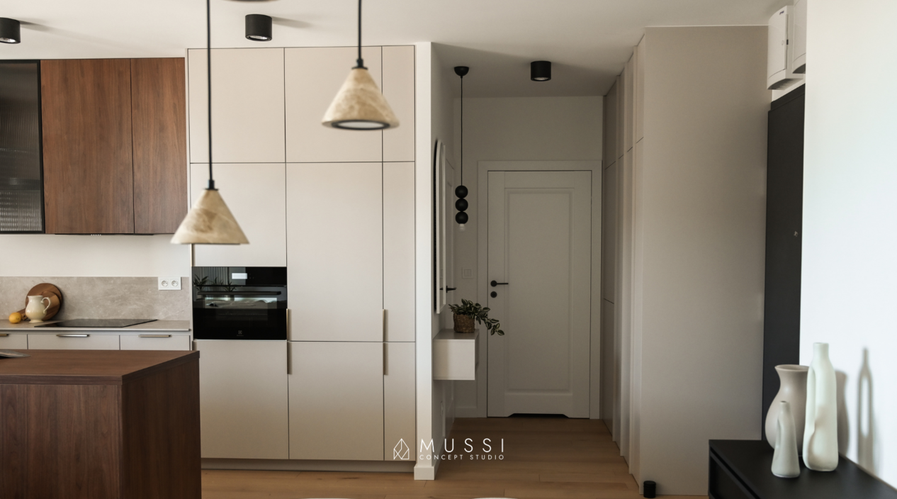 Prezentowane zdjęcia ukazują realizację projektu wnętrza mieszkania zaprojektowanego dla pary. Lokal znajduje się w innym mieście niż miejsce stałego zamieszkania Inwestorów i ma pełnić funkcję mieszkania okazjonalnego – na krótsze pobyty. Z tego względu szczególny nacisk położyliśmy na funkcjonalność, łatwość użytkowania i komfort podczas krótszych wizyt, bez nadmiernego przeładowania przestrzeni.