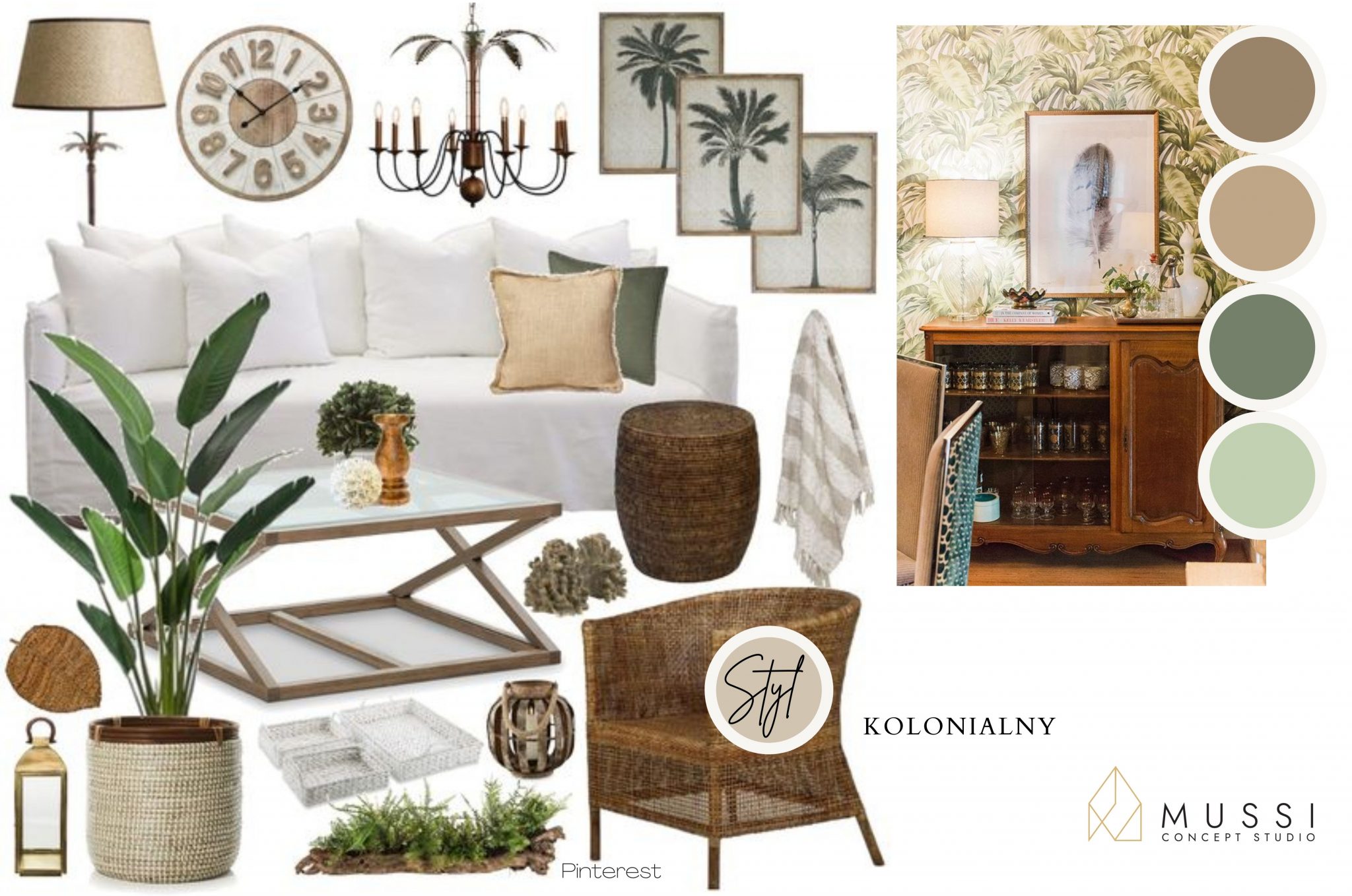 Kraje takie jak Afryka, Indie czy Chiny w swoich aranżacjach stosują barwy naturalne, stonowane, takie które sprawiają, że wnętrze jest świeże, przestronne i harmonijne. Bazą dla stylu kolonialnego są barwy ziemi, beże, szarości, albo przeciwnie – bordo lub ciemna, tropikalna zieleń. Na ścianach pojawia się dekoracyjne belkowanie wykonane z ciemnego drewna typu: mahoń lub palisander. Podłoga z drewna to miejsce na efektowny dywan w stylizacji indyjskiej lub tureckiej. Detale, które ożywiają wnętrze, to: kolorowe poduszki z wzorami etno, duże rośliny egzotyczne, obrazy. Kontrast mebli i ścian ożywi aranżację równie mocno jak wzorzyste detale, np. tapeta w stonowanych barwach.
